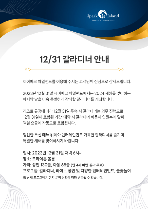 2023년 12월 31일 갈라디너 진행 안내