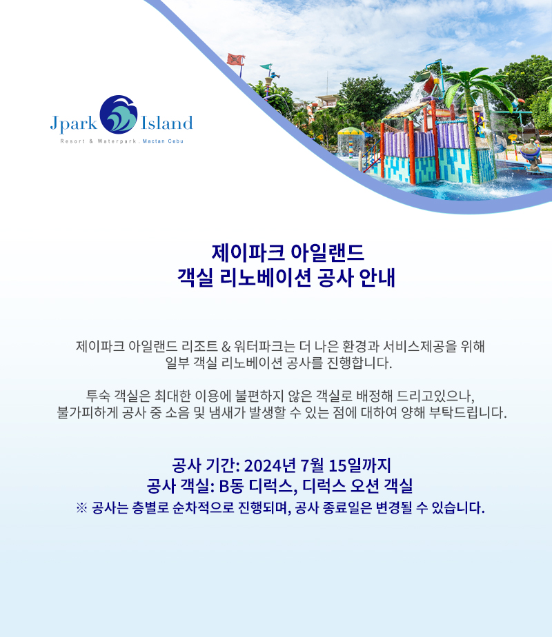 제이파크 아일랜드 객실 리노베이션 공사 안내